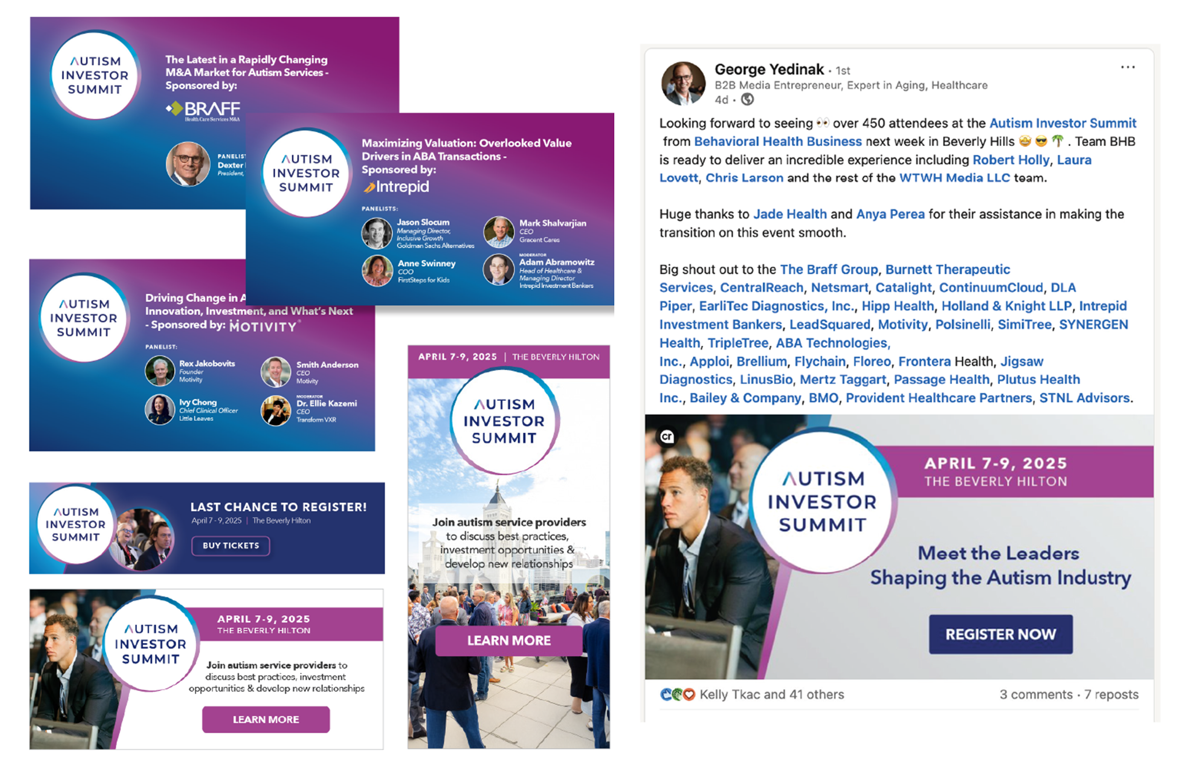 Led the design and promotion of the Autism Investor Summit, an acquired event rebranded under Behavioral Health Business that required a wide range of new print and digital assets.